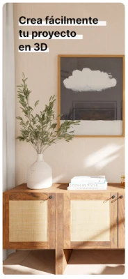 Explora infinitas ideas para el diseño interior de tu hogar. Visualiza tus espacios en 3D, experimenta con muebles y decoración, y guarda todos tus proyectos de diseño. Lleva contigo la inspiración para amueblar y decorar tu casa, planificando cada detalle con facilidad y creatividad, donde sea que vayas.